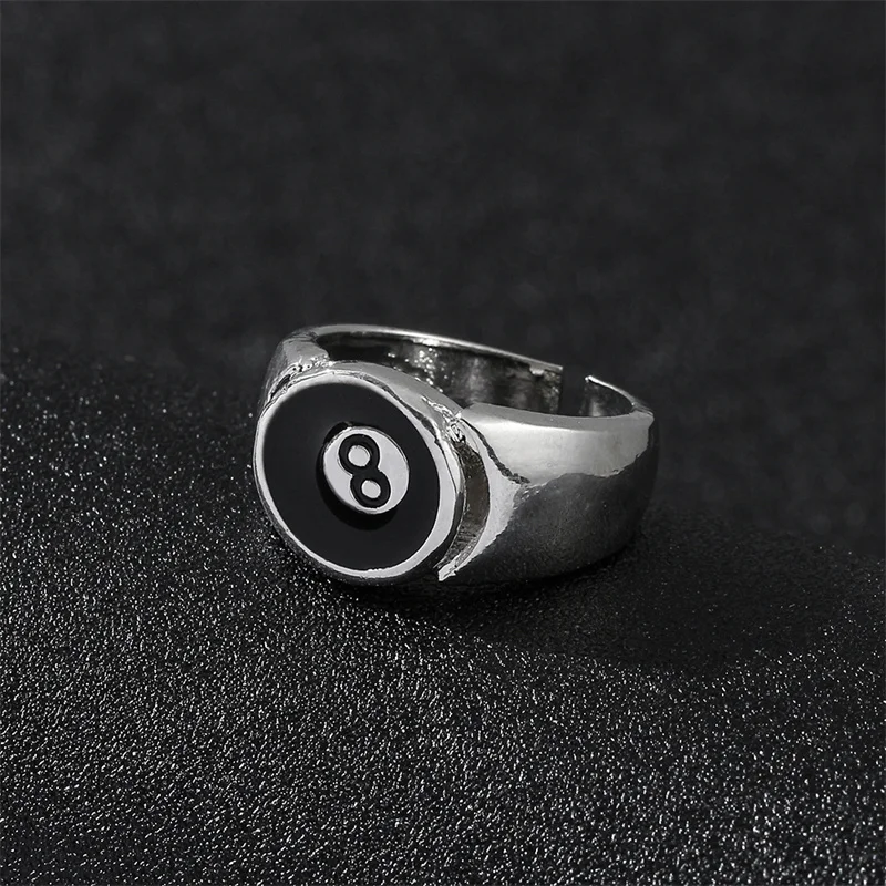 Number 8 Black Pool Billiard Ball Ring for Man, Personality Charm, Cocktail Party Accessories, Eight ,