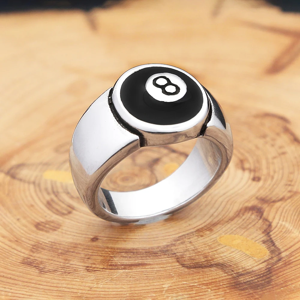Punk Vintage Number Black 8 Eight Pool Billiard Ball Gear Rings For Men Women Stainless Steel Hip Hop Party Jewelry Dropshipping  Read more