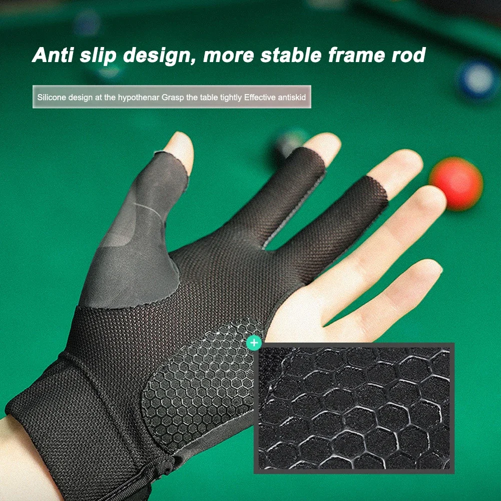 1pc Open Finger Billiard Gloves Breathable Polyester Snooker Pool Glove Adjustable Sticker Smooth Soft Lightweight Amateur Train