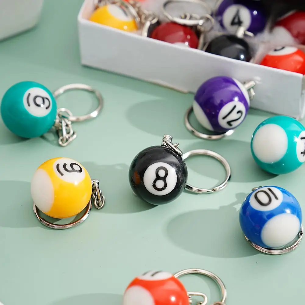 16pcs/Set Mini Billiards Shaped Keyring Assorted Colorful Billiards Pool Small Ball Keychain Creative Hanging Decorations