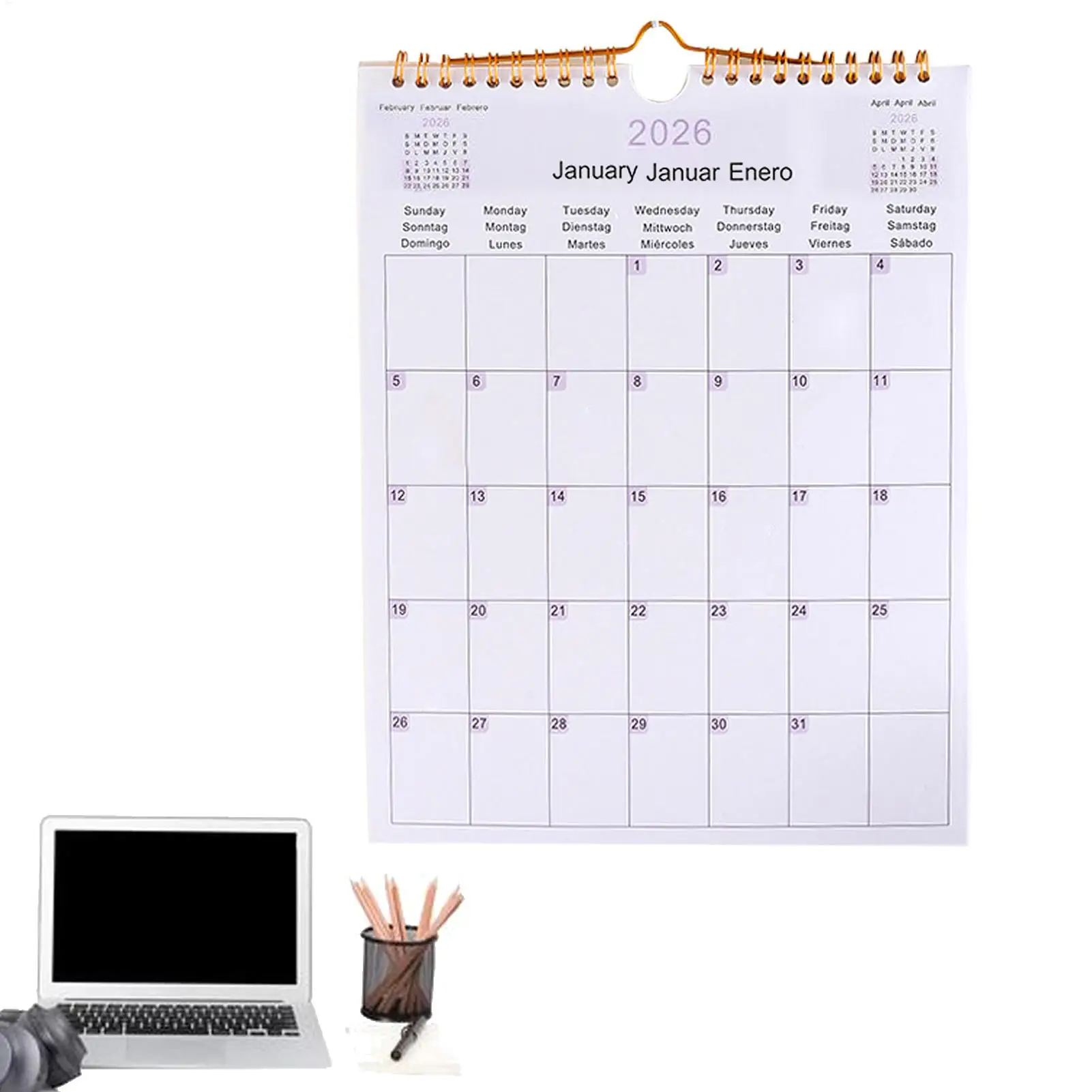 2026 Wall Calendar 12-Month Multilingual Coil Planner Modern Decorative Planner for Home, Office, School & Dorm Room Decor