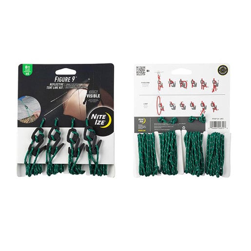 This ingenious, lightweight plastic set of four award-winning Figure 9 rope tighteners makes tent set-up a snap. The Figure 9's provide easy tension and secure adjustment without tying a single knot. Just pull your lines tight and keep them that way...