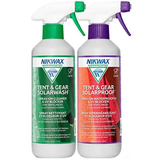 Nixwax Tent & Gear Duo-Pack - The complete care system for thoroughly cleaning, restoring water repellency, and adding UV protection to outdoor gear. Easy non-aerosol spray-on application, non-flammable and PFC free. Tent & Gear SolarWash cleans, ...