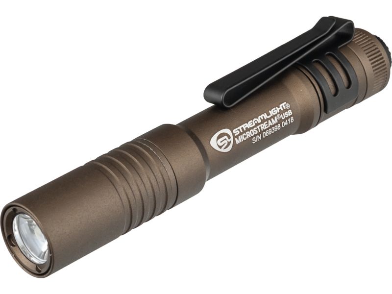 Streamlight MicroStream USB Rechargeable Bright Small LED Flashlight 250/50 Lumens w/ 5in USB Cord and Lanyard Clam Coyote 66608