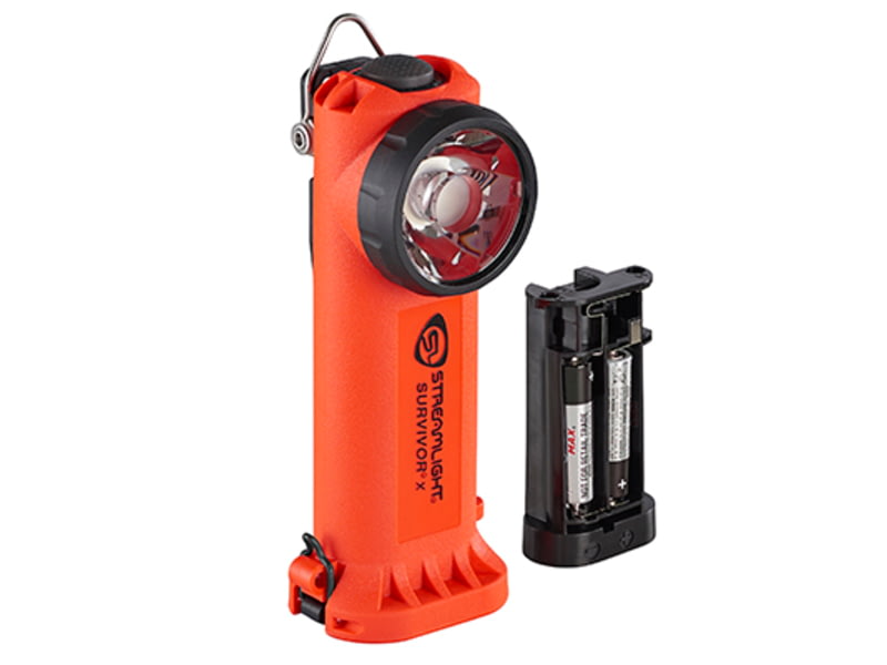 Streamlight Survivor X Safety-Rated Firefighters Right-Angle LED Flashlight AA Alkaline White 250 Lumens Orange 90950. The Clip Securely Grabs Onto Gear And The D-ring Allows Your Light To Hang Forward For Hands-free Use. Led Technology With Three...