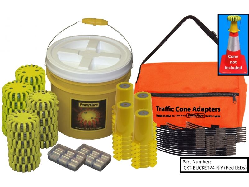 Powerflare 24-Position Cone Adapter Kit with 24-Pack Bucket of PowerFlare Lights Red LEDs Tan Shell CKT-BUCKET24-R-T