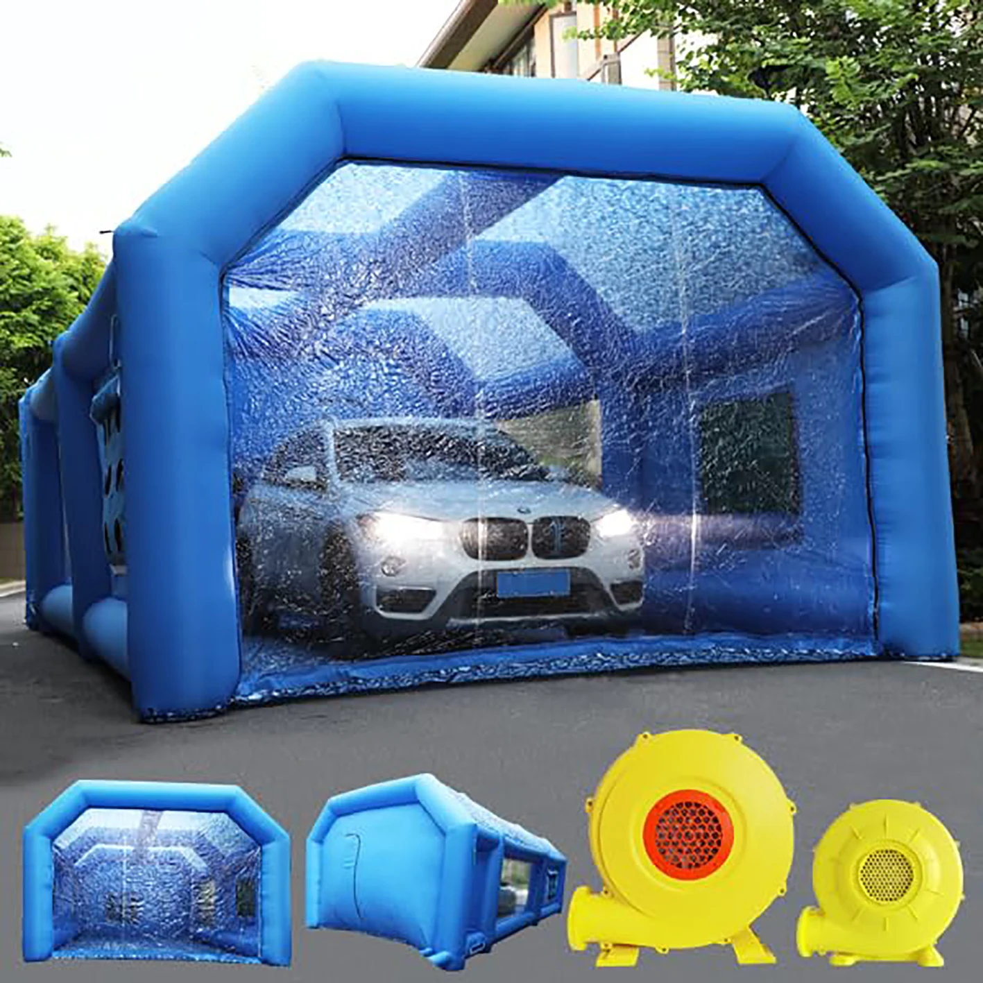 Blue Inflatable Paint Booth For Car 28x15x13FT Portable Spray Booth Tent With 950W+250W Blowers Air Filter System For DIY Spray