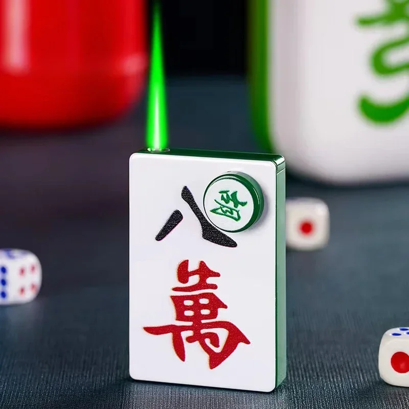 Mahjong Lighter Inflatable Exquisite Small Mahjong Open Flame Lighter Mini Fun Accessories Rotating Decompression Accessories