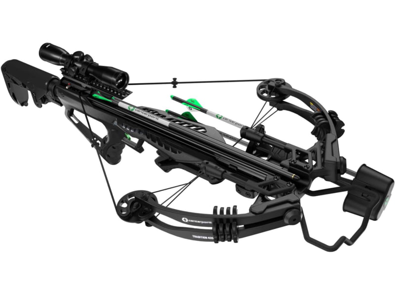 CenterPoint Tradition 405 Crossbow Package Compound 405fps Velocity Black C0002. The Whisper Silencing System ensures ultimate noise reduction and vibration controlgiving you ultimate stealth and confidence in the field. Specifications for...