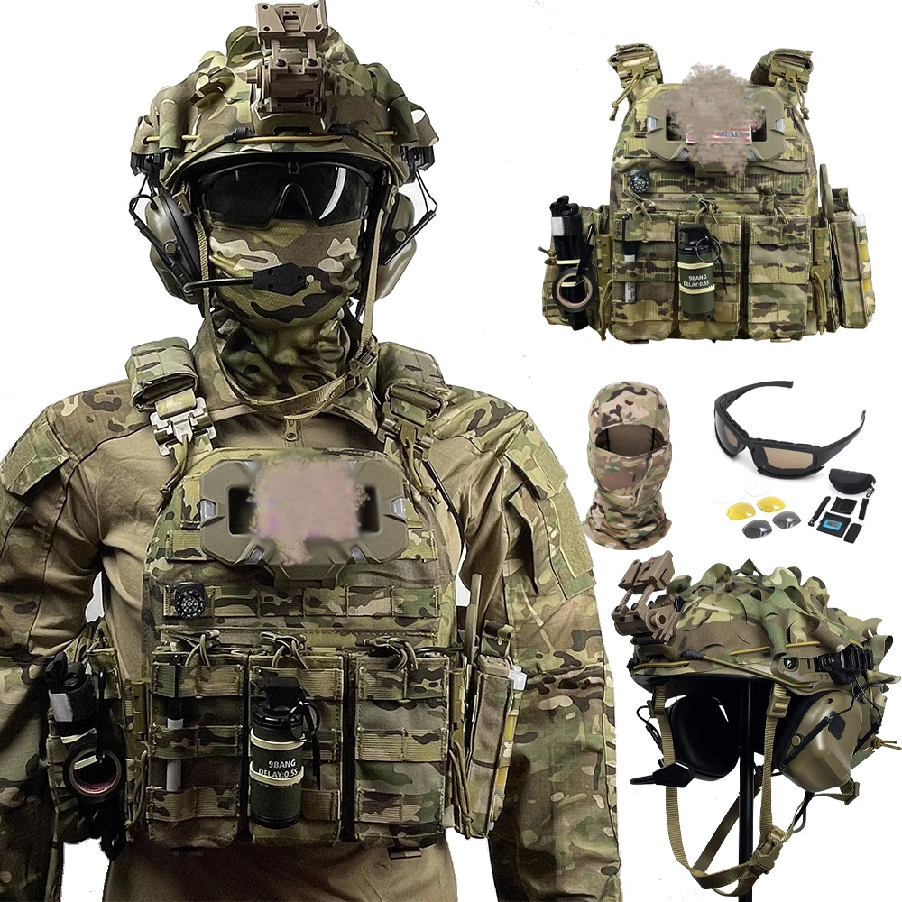 Tactical Full Set of Equipment Fast Camouflage Helmet Quick-Release Vest Special Forces Chest Mount for Call of Duty CS Wargame