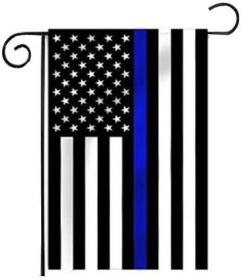 AES 12x18 USA Police Thin Blue Line 12" x 18" Garden Flag Police Memorial Sewn Nylon House Banner Double Stitched Fade R TTI