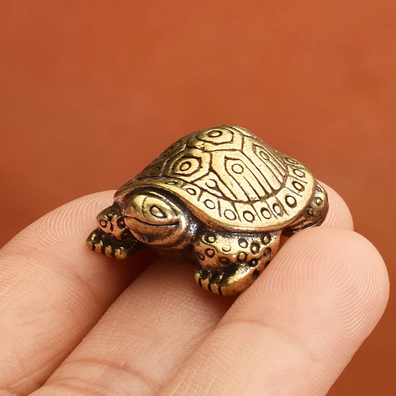 1Pc Antique Solid Brass Turtle Ornaments Longevity Animal Sculpture Home Office Desk Decorative Simulation Ornament