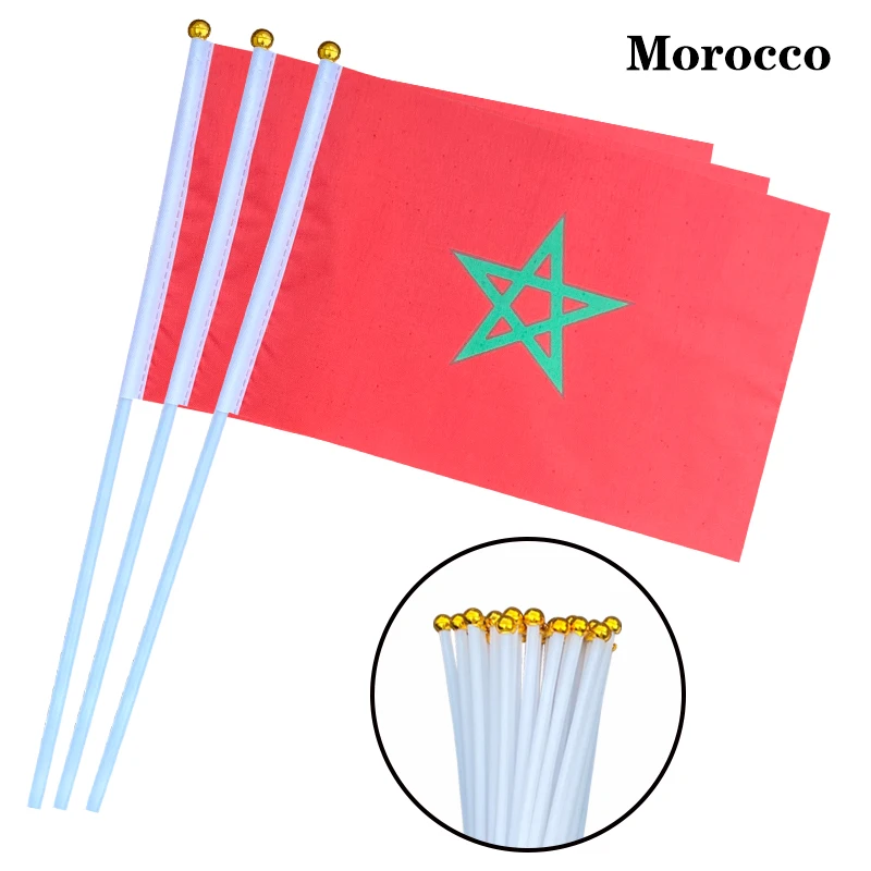 EOODLOVE 10/20/50 pieces 14 * 21cm Moroccan hand-held plastic stick flag outdoor celebration event Moroccan small-sized flag