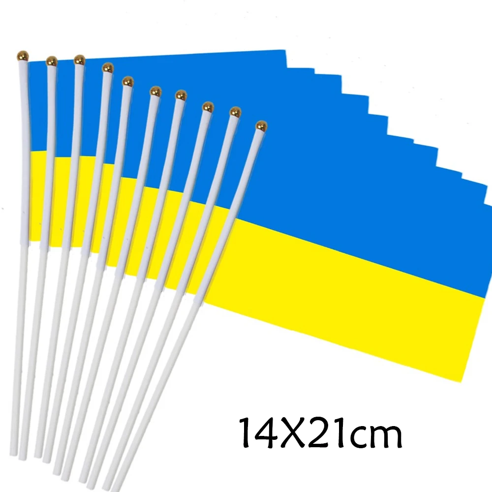 14X21 CM Ukrainian Flag Small Hand Waving For Car With Plastic Pole Double Sided Polyester Printing Ukraine National Flags Peace  Read more