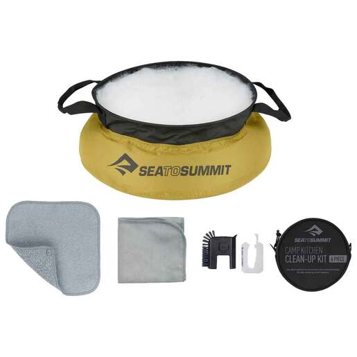 Sea to Summit Camp Kitchen Clean-Up Kit - Everything you need for convenient and Leave No Trace- compliant washing in the outdoors in one compact kit. Features Includes: Kitchen sink, pot scrubber, wilderness wash, washcloth, DryLite towel 10 Liter...