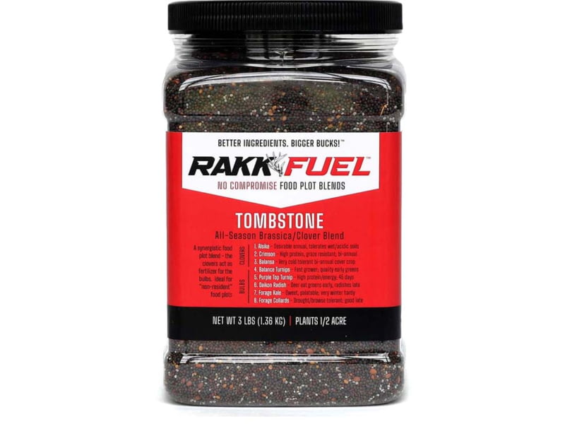 RaKK Fuel Tombstone 1/2 Acre Brassica/Clover Blend Small 7536. A synergistic food plot blend - the clovers act as fertilizer for the bulbs. Ideal for food plotters who don't have time to nurse their plots. Specifications for RaKK Fuel Tombstone 1/2...  Read more
