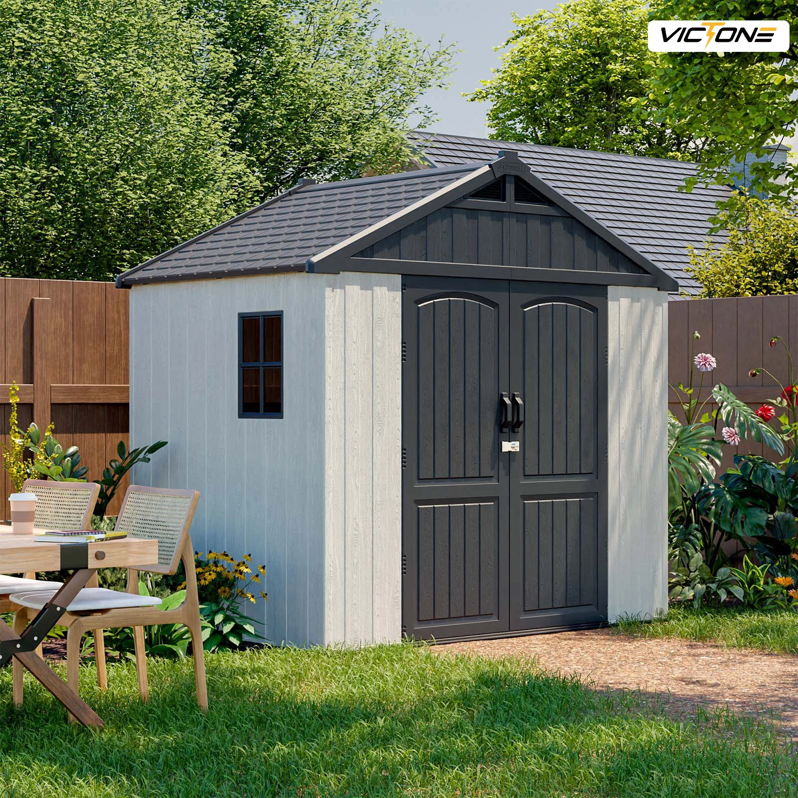 Victone 8' x 6' Plastic Outdoor Storage Shed with Floor, Resin Shed with Window and Lockable Door for your Garden, Off White