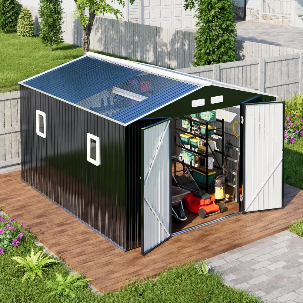 Metal Shed 10x12 Reinforced Sheds Outdoor Storage, Natural Lighting Tool Sheds with Translucent Roof Panels, Windows, and Lockab