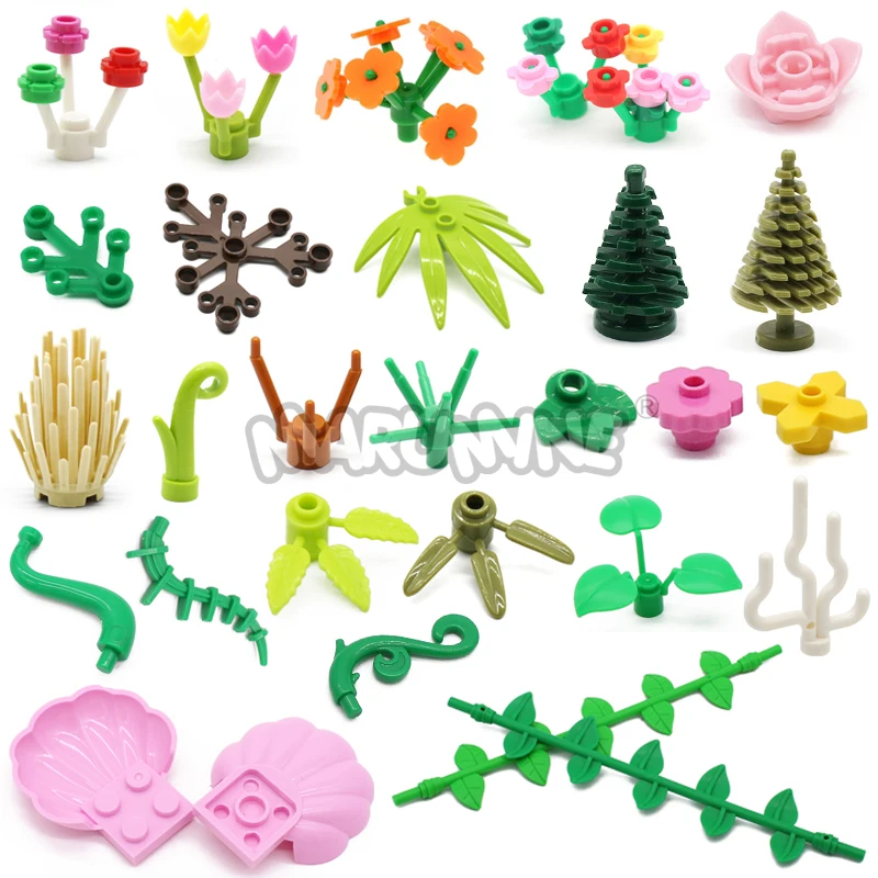 MARUMINE Tree Plant Accessories Garden Parts Building Blocks Flower Green Grass Bush Leaf Jungle DIY MOC Idea Bricks 6064 2471