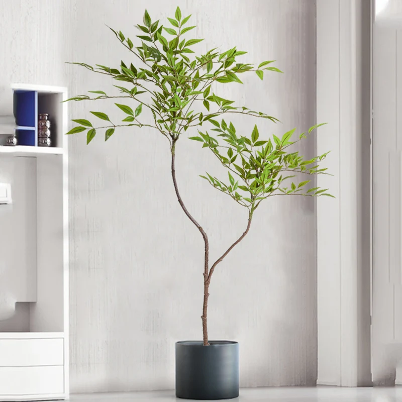 110cm 2 Forks Large Artificial Plants Fake Bamboo Tree Branch Plastic Nandina Leaves Tall Green Landscape For Home Garden Decor