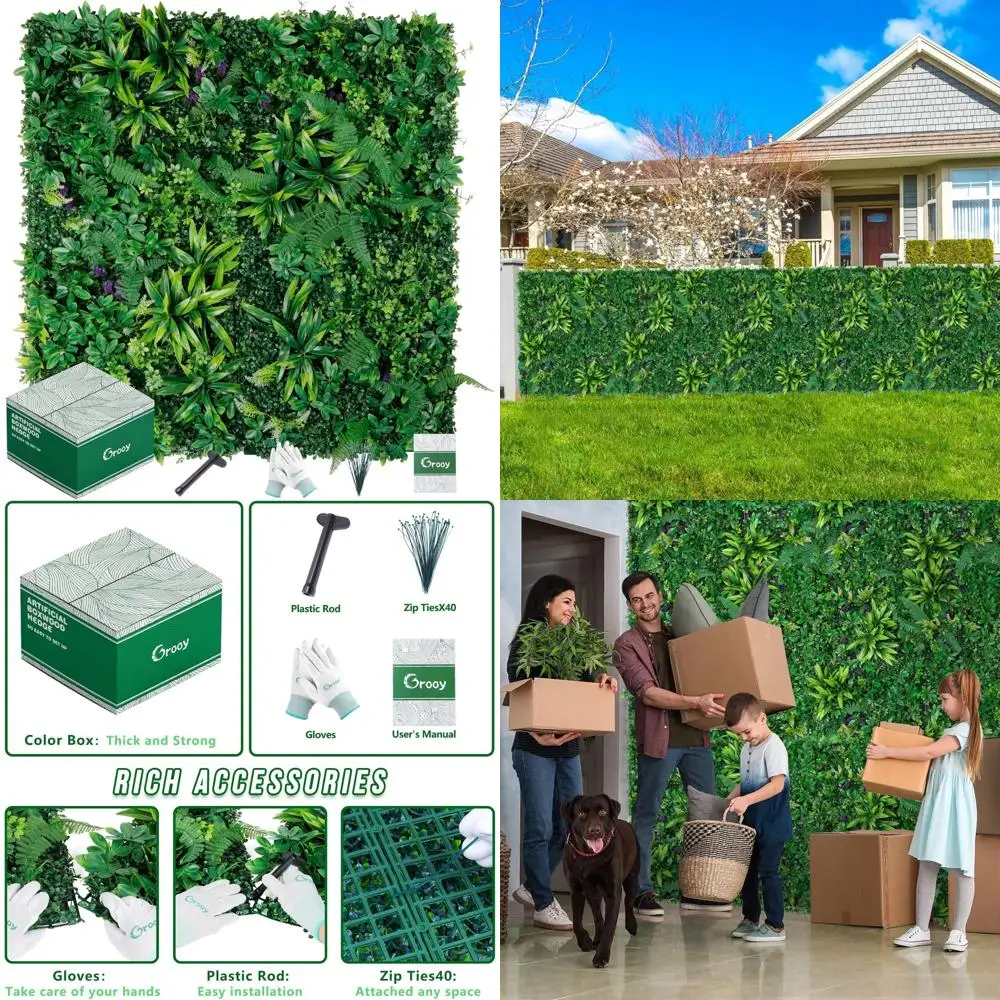 Artificial Boxwood Panels, Grass Wall Panels 20x20(12pcs), Privacy Hedge Fence Screen with UV Protection, Fake Greenery Backdrop  Read more