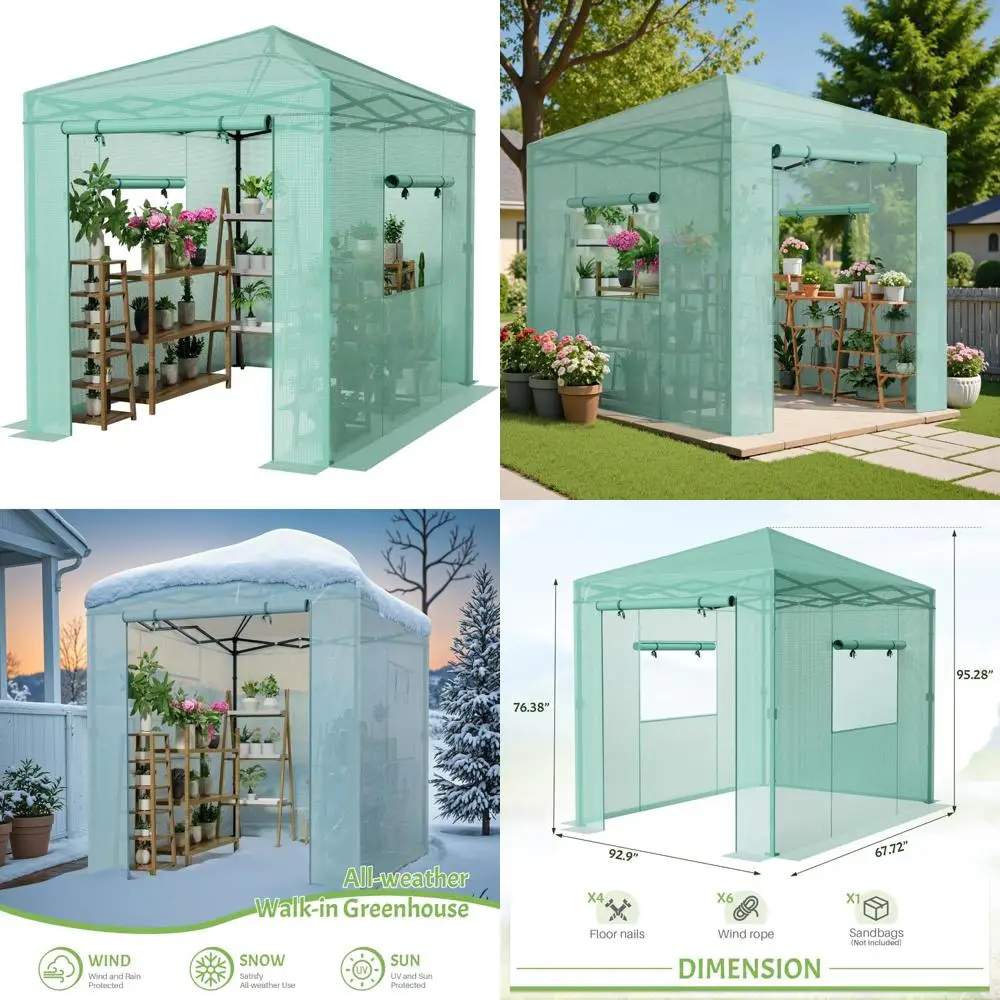 8x6 Feet Greesum Portable Pop-Up Greenhouse with Center Lock, PE Cover, Zippered Door, and 2 Roll-up Windows for Easy Assembly (  Read more