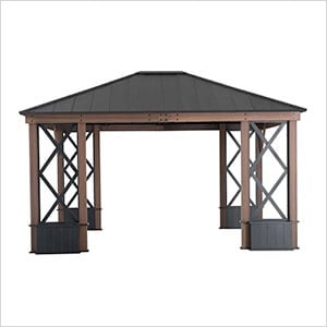 Sunjoy Group 13 x 15 Hardtop Aluminum Framed Gazebo with Planters and Ceiling Hook
