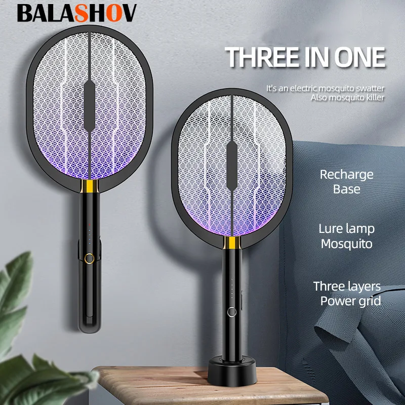 3-in-1 Electric Mosquito Racket With Purple Killer Lamp TYPE-C Rechargeable Electric Bug Zappers Fly Swatter