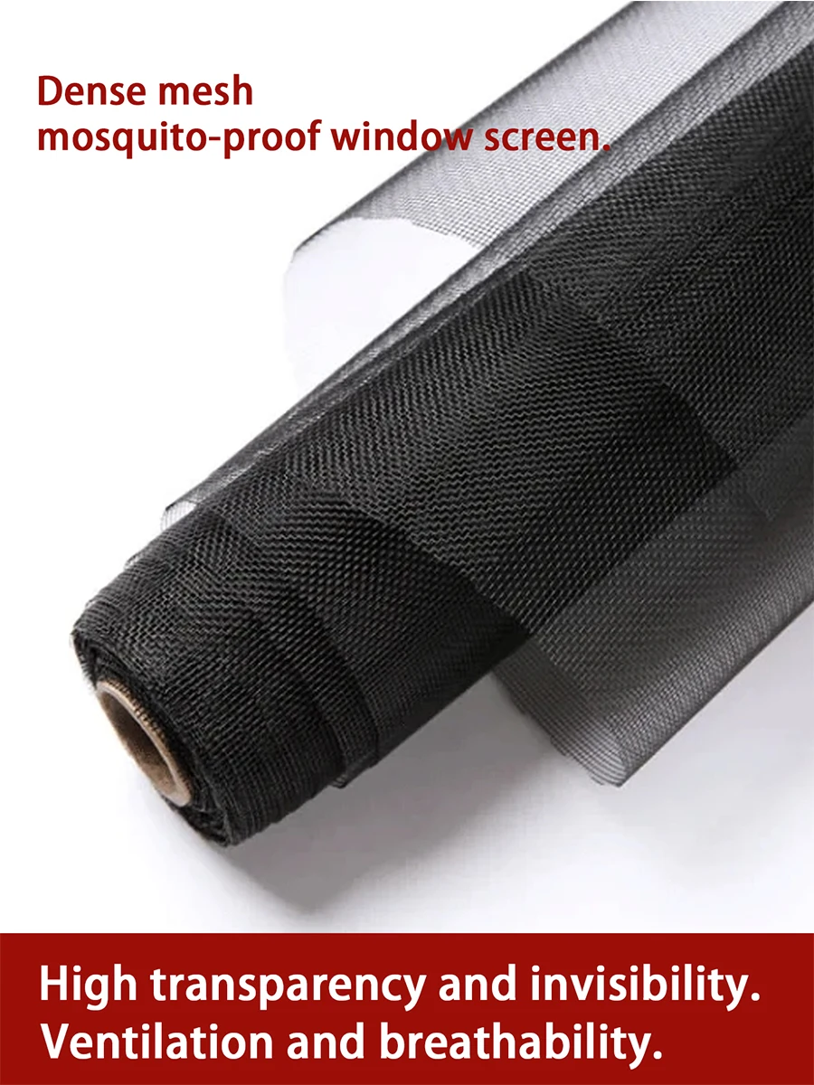Black High-Density Mosquito Screen Mesh - Customizable, Self-Adhesive, Breathable, Washable, Durable, and Easy to Install