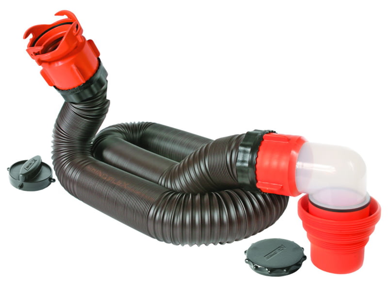 Camco Rhinoflex Sewer Hose Kit. At the RV end of the hose there is a super-tough bayonet fitting with 4 prongs for a more secure fit. At the dump-station end we've added an easily detachable 4-in-1 adapter for fitting to 3" slip or 3" 3-1/2" and 4"...  Read more