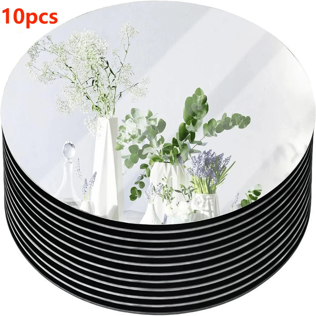 10PCS Acrylic Round Mirrors For Centerpieces Circle Mirrors Candle Plates For Wall Wedding Table Centerpieces Round Mirror Tray