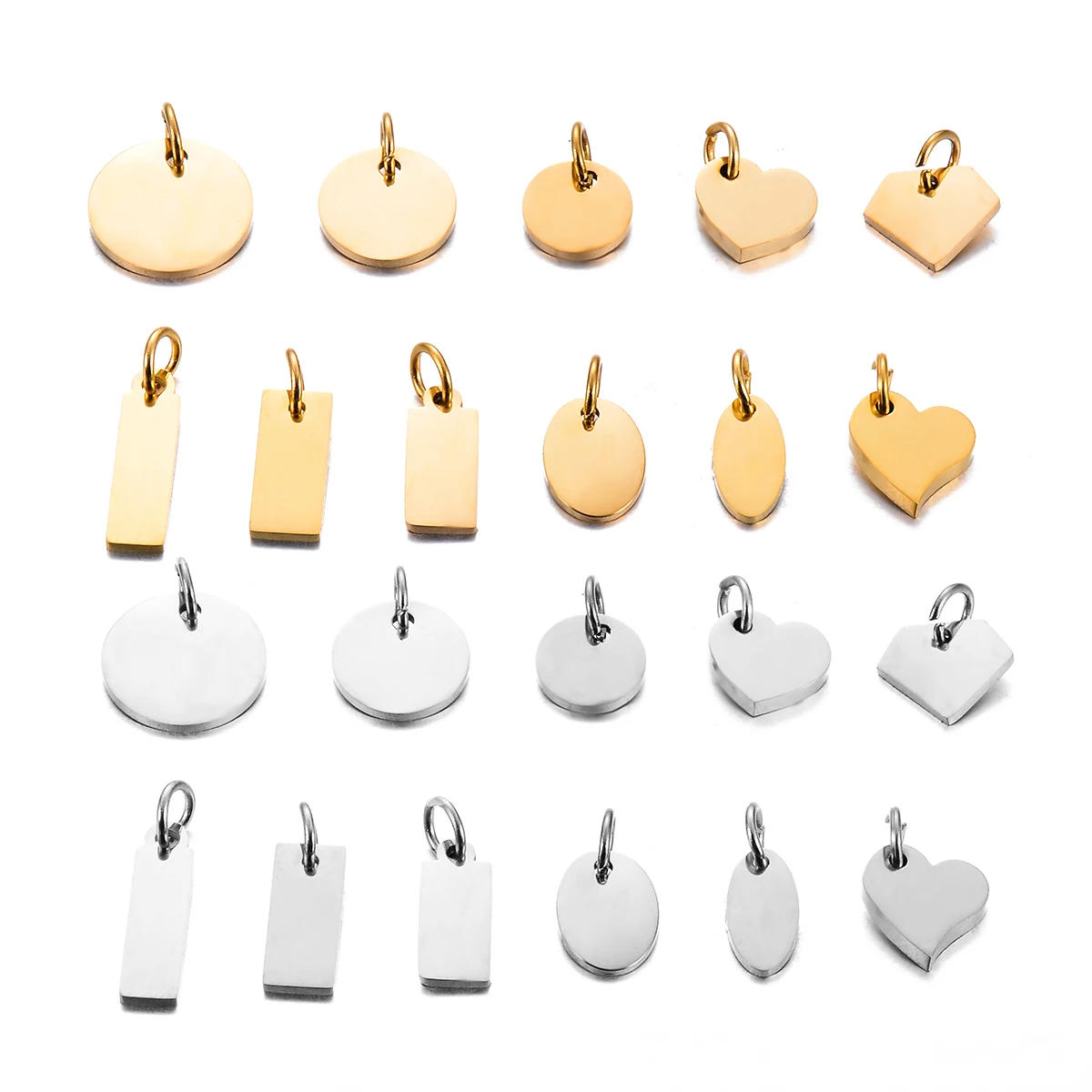 10Pcs Blank Heart Rectangle Round Oval Stainless Steel Mirror Polished Accessories DIY Logo Name Tags Supplies