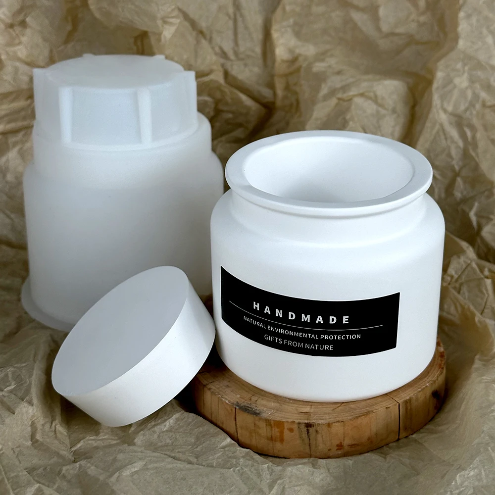 Round Storage Box with Lid Concrete Silicone Mold DIY Scented Candle Jar Plaster Cement Mould Resin Flowerpot Molds Home Decor