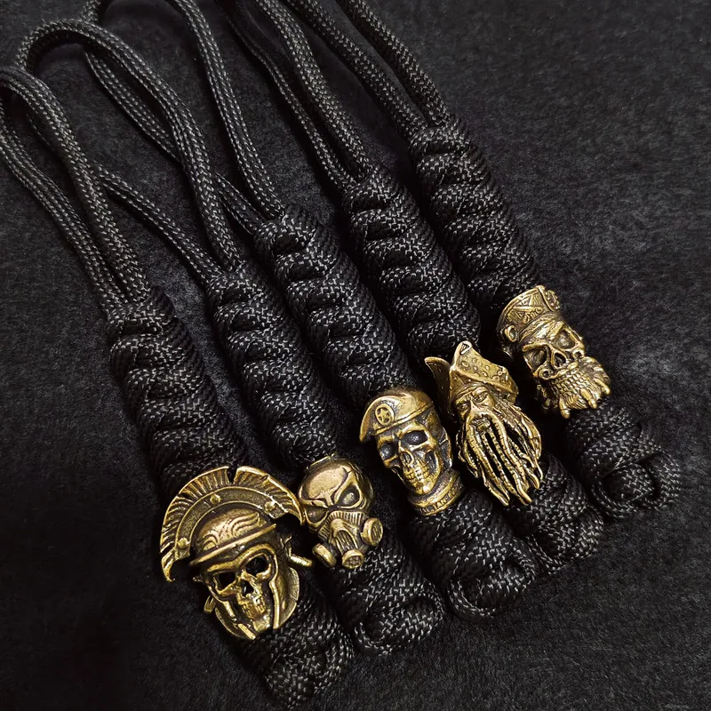 Paracord Weave Skull Head Brass Beads Lanyard DIY Pendants EDC Outdoor Tool Umbrella Rope Woven Knife Charms Accessories  Read more