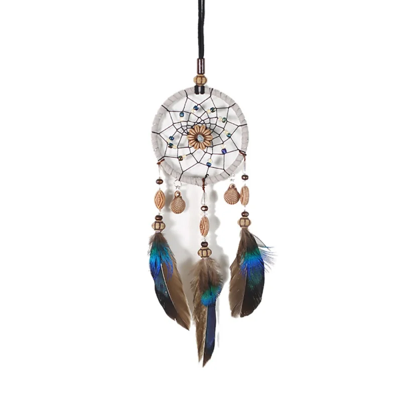 Mini Car Dream Catcher Beaded Natural Feathers Handcraft Chic Hanging Ornaments Mirror Room Bedroom Party Wedding Wall Decor  Read more