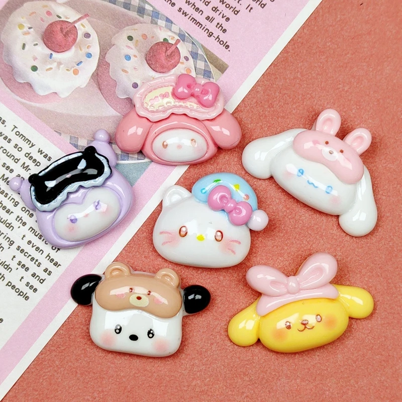 10Pcs Cartoon Resin Cute Animal Kitten, rabbit, puppy Hairpin Pendant Scrapbook Craft Diy Miniature Ornament Accessories A26