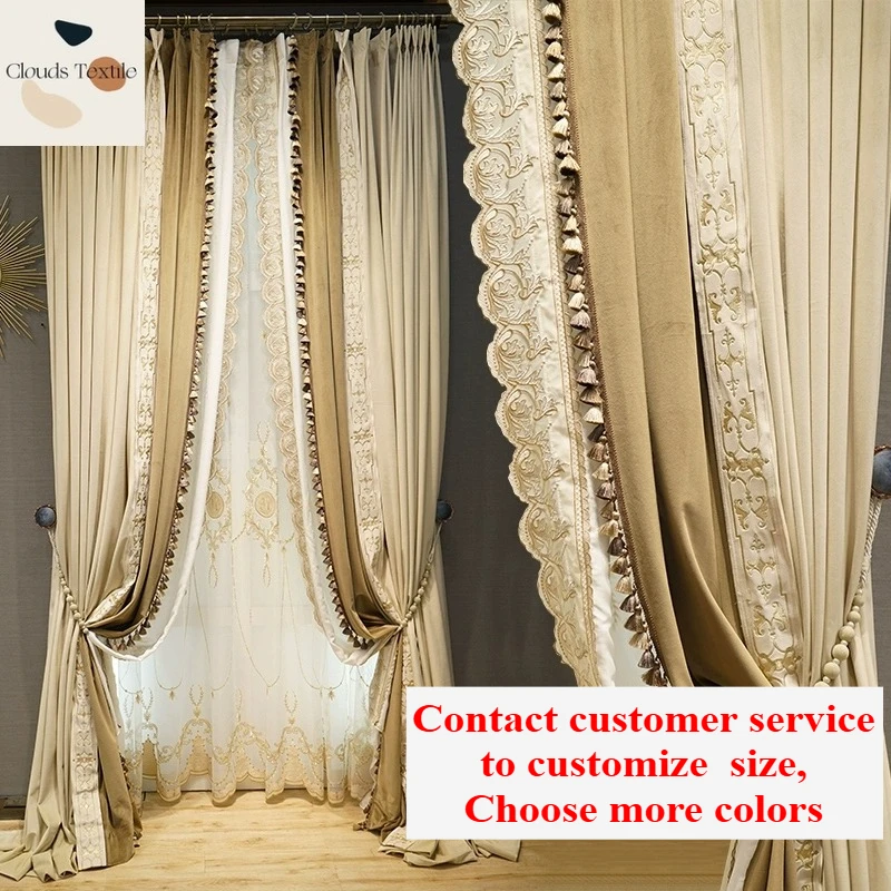 Customize European Embroidery Brown Luxury Velvet Curtains for Living Dining Room Bedroom Villa Home Window Blackout Tulle Decor