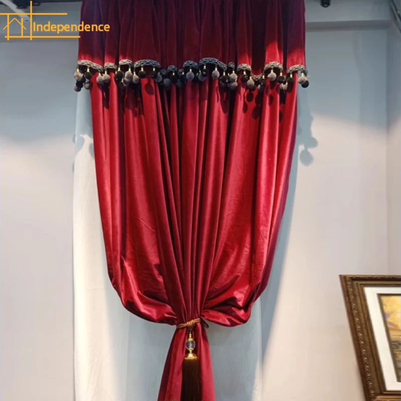 Vintage Wine Red Velvet Curtains for Living Room Bedroom French Window Balcony Villa Customized Finished Products Valance