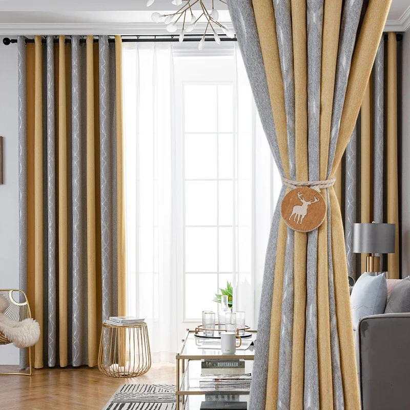 Nordic Style Wool Velvet Seamless Splicing High Shading Curtains for Living Room Bedroom Blackout Window Curtain Custom Cortinas