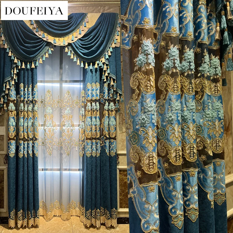 Custom Size White Tulle European Embroidery Hollow Chenille Elegant Luxury Sheer Curtains for Living Dining Room Bedroom Door