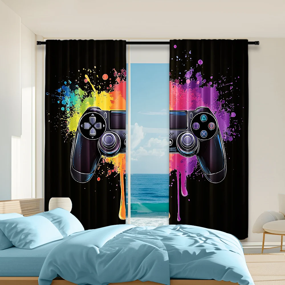 2Pcs Gamepad Print Window Curtains Colorful Game Controller Window Drapes For Living Room Bedroom Home Decor_ai14