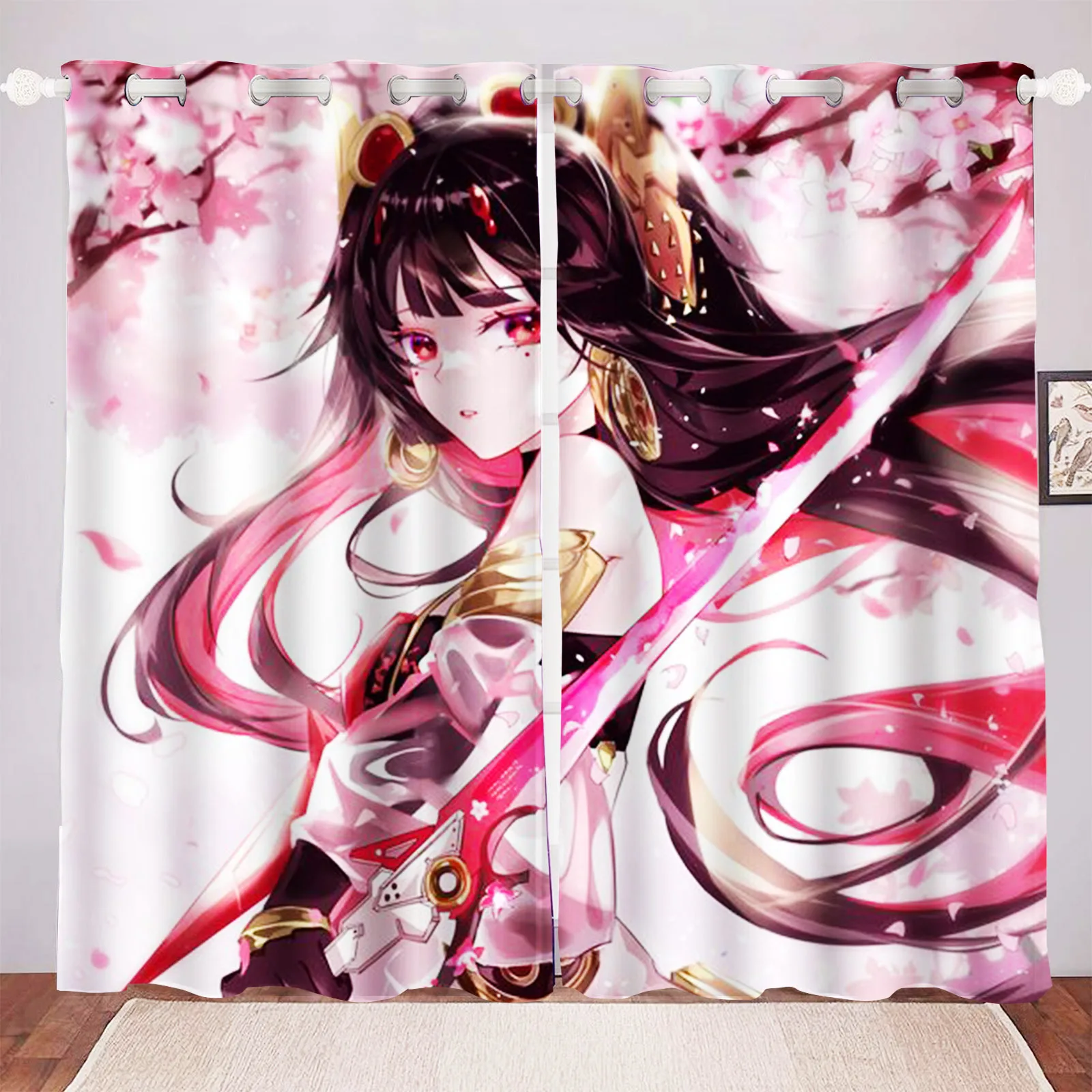 Anime Girl 3D Digital Print Curtain Cartoon Window Animation Blackout Bedroom Fashion Style Cute Home Decoration 100% Polyester