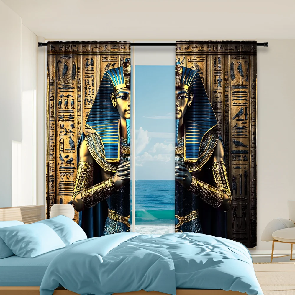 2Pcs Egyptian Pharaoh Print Window Curtain Digital Printed Drapes For Bedroom Living Room Office Home Decor Rod Pocket Design