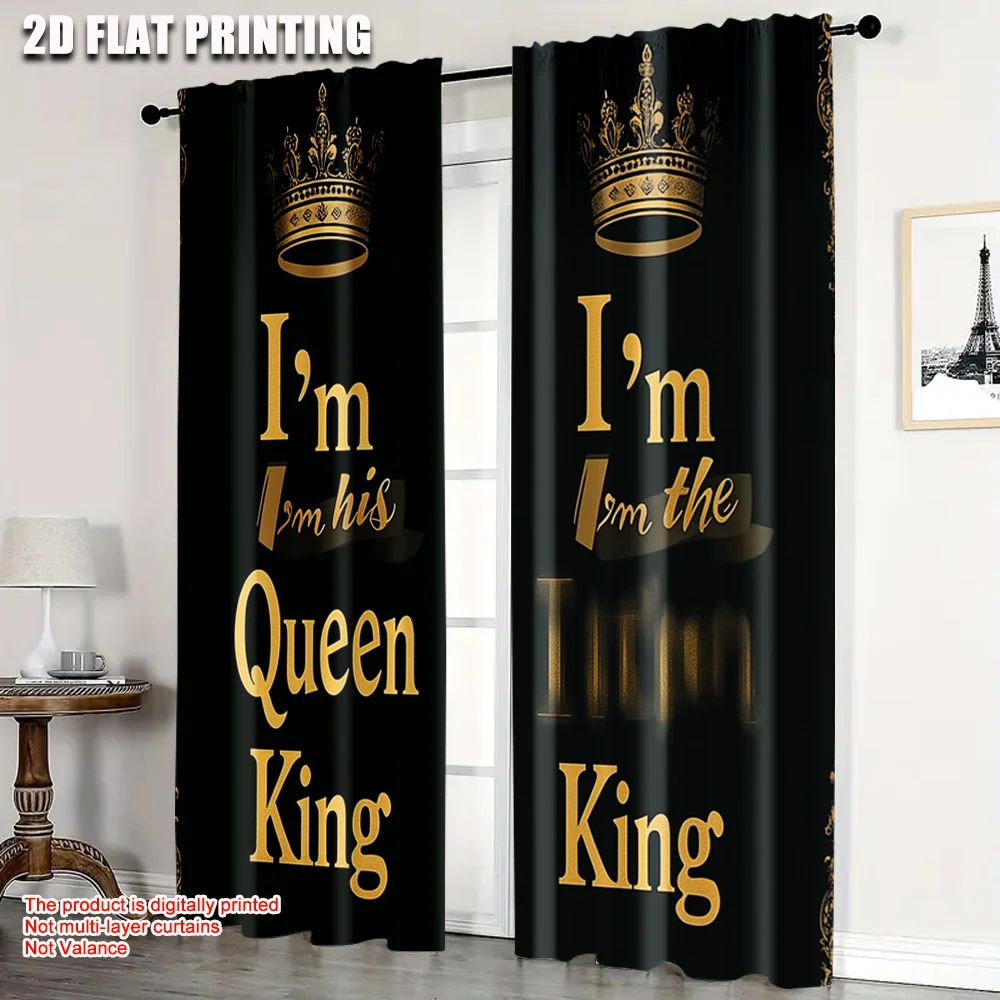 2pcs, Minimalist Curtains 2D print King and Queen Printed 100% Polyester (without rod) Decorations For Home Perfect for Bedroom,