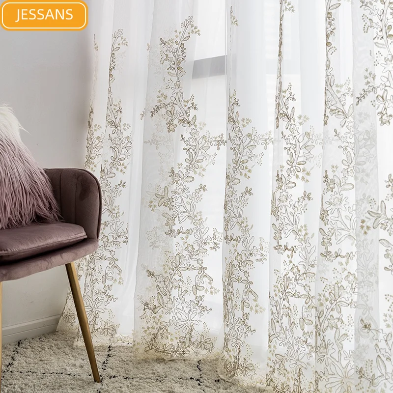 1Pc 100*250cm Flower Jacquard Tulle Window Curtain Drape Lace Embroidered Sheer Voile Curtains Bedroom Balcony Living Room Decor  Read more