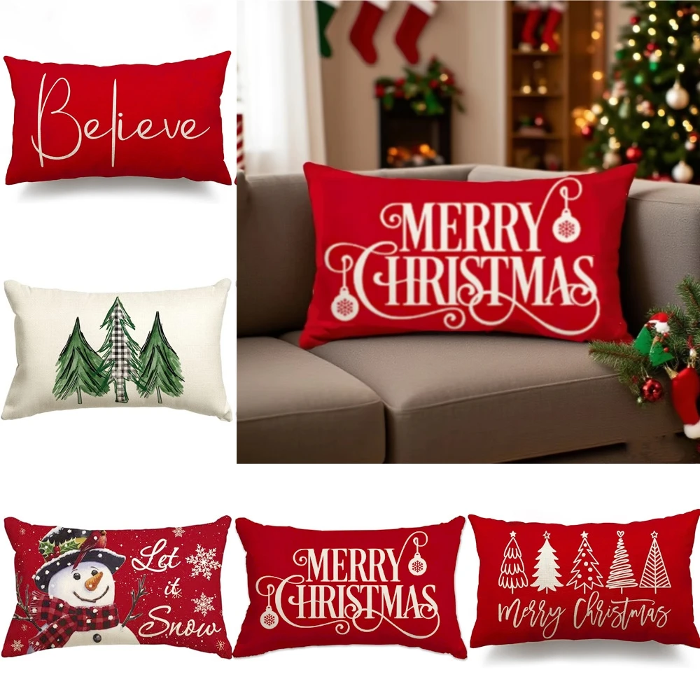 Xmas Tree Pillow Cover 30x50cm Linen Throw Pillowcase Merry Christmas Decorative Snowmen Letter Decor Pillowcase Cushion Cover