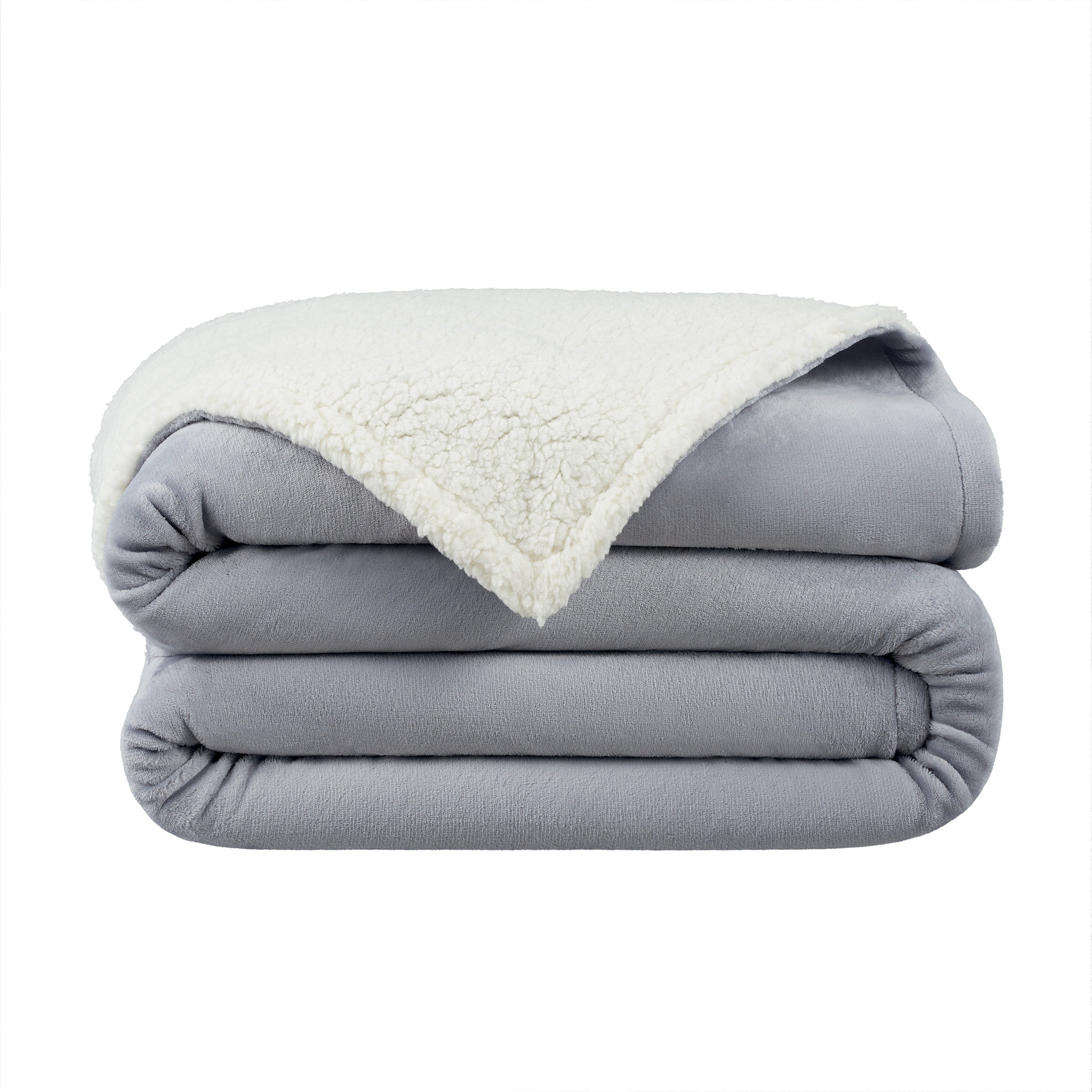 Host & Home Plush to Sherpa Blankets (Full/Queen) Grey (P-BKTPF-9090-GY)