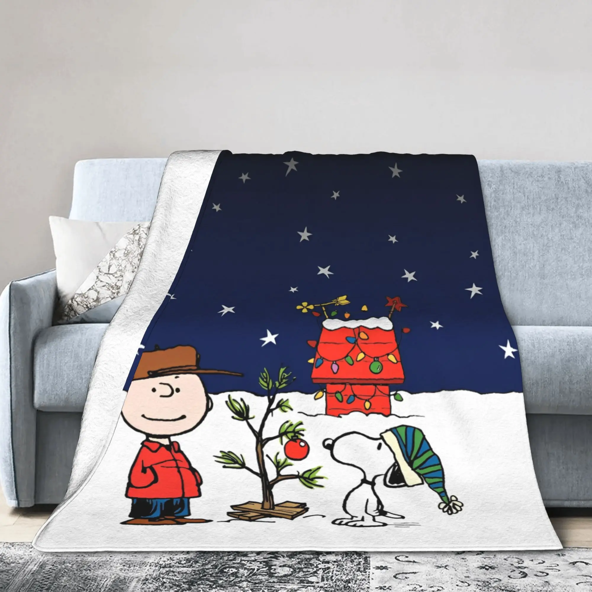 Cartoon Snoopy Merry Christmas Blankets Velvet Decoration Multifunction Soft Throw Blankets for Bedding Couch Quilt