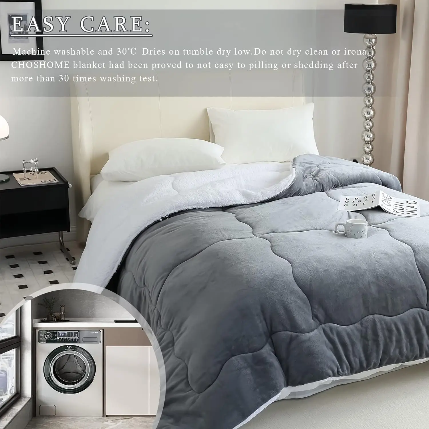 1 Pc Wool Sofa Blanket - Thick and Warm Winter Blanket, Soft Plush Christmas Blanket, Gift for Women, Gray, 50x60 inches