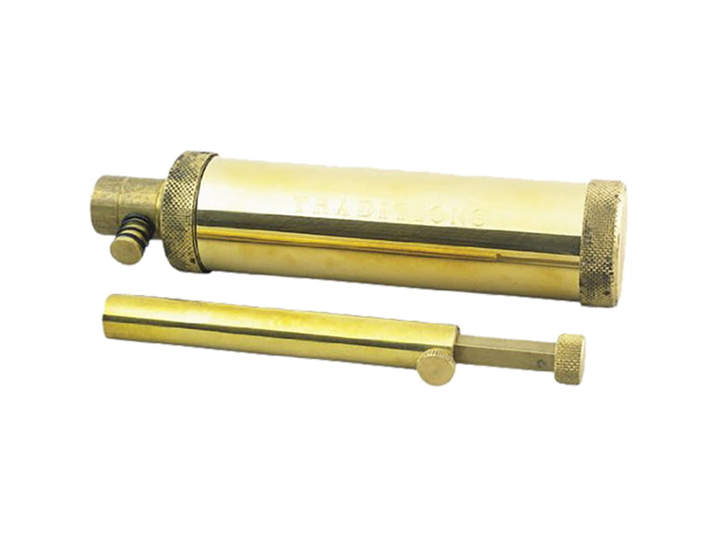 Traditions Hunter Flask with Powder Measure Gold A1334. Adjustable measure slips into spout for 5-120 grain charges. Brass body construction. Specifications for Traditions Hunter Flask with Powder Measure: Manufacturer: Traditions Color: Gold...  Read more